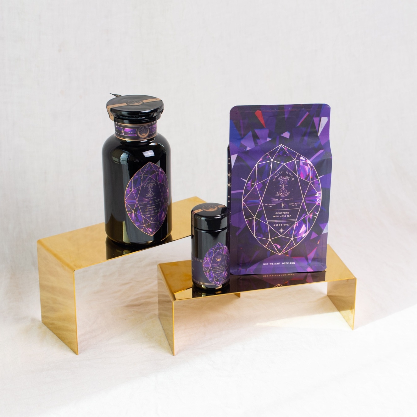 Amethyst: Strawberry-Passionfruit Gemstone Wellness Tea – Luxe Pouch (60-75 Cups-Refill your Jar!)