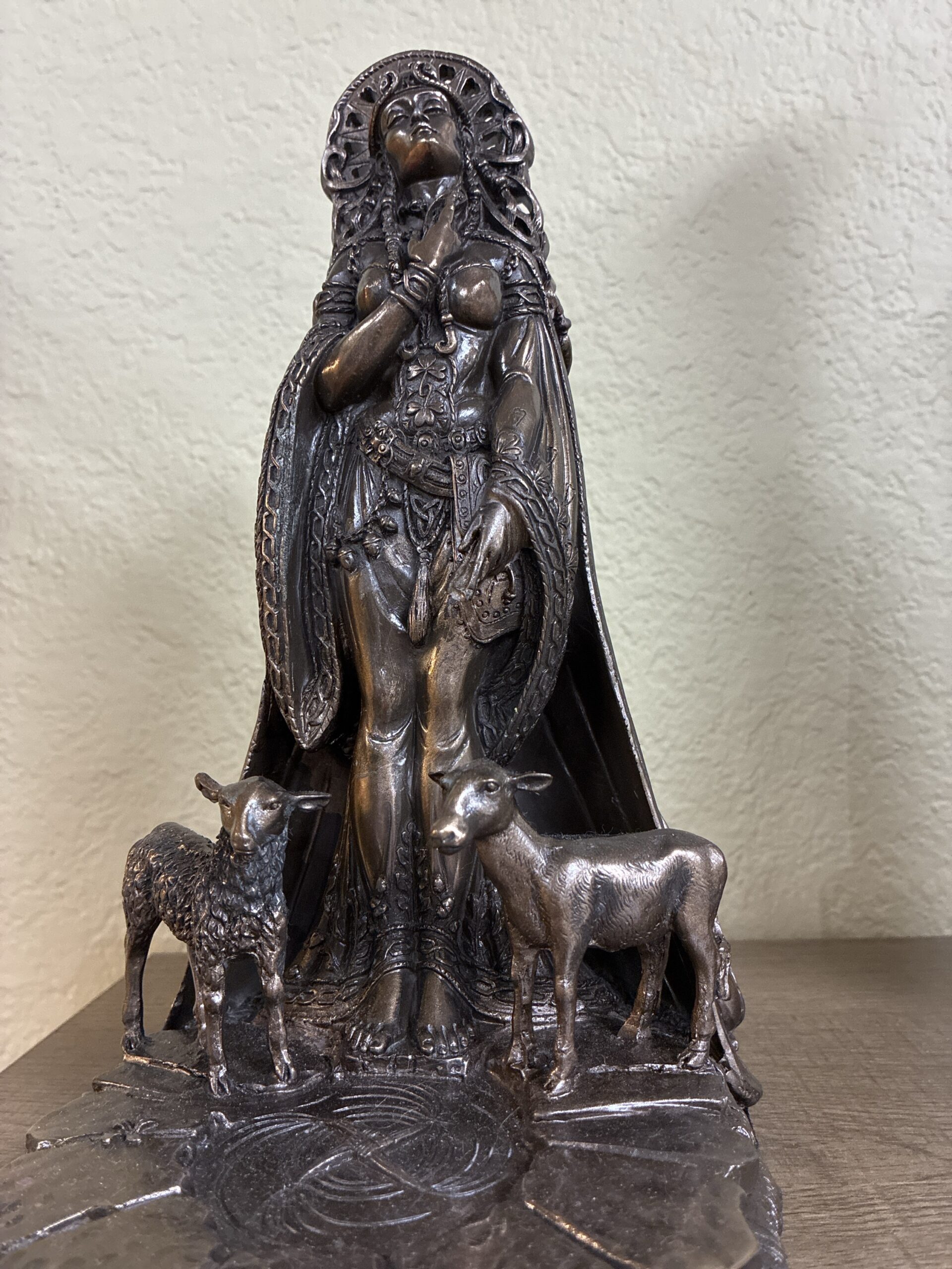 This Brigid Bronze statue honors the Celtic goddess of hearth, creativity, and transformation. Brigid embodies inspiration, healing, and protection — making her a beloved figure among those who walk a spiritual or pagan path. Crafted in rich bronze tones, this statue brings divine feminine energy and sacred fire to any altar, meditation space, or home. A perfect piece for honoring creativity, renewal, and the sacred flame within.