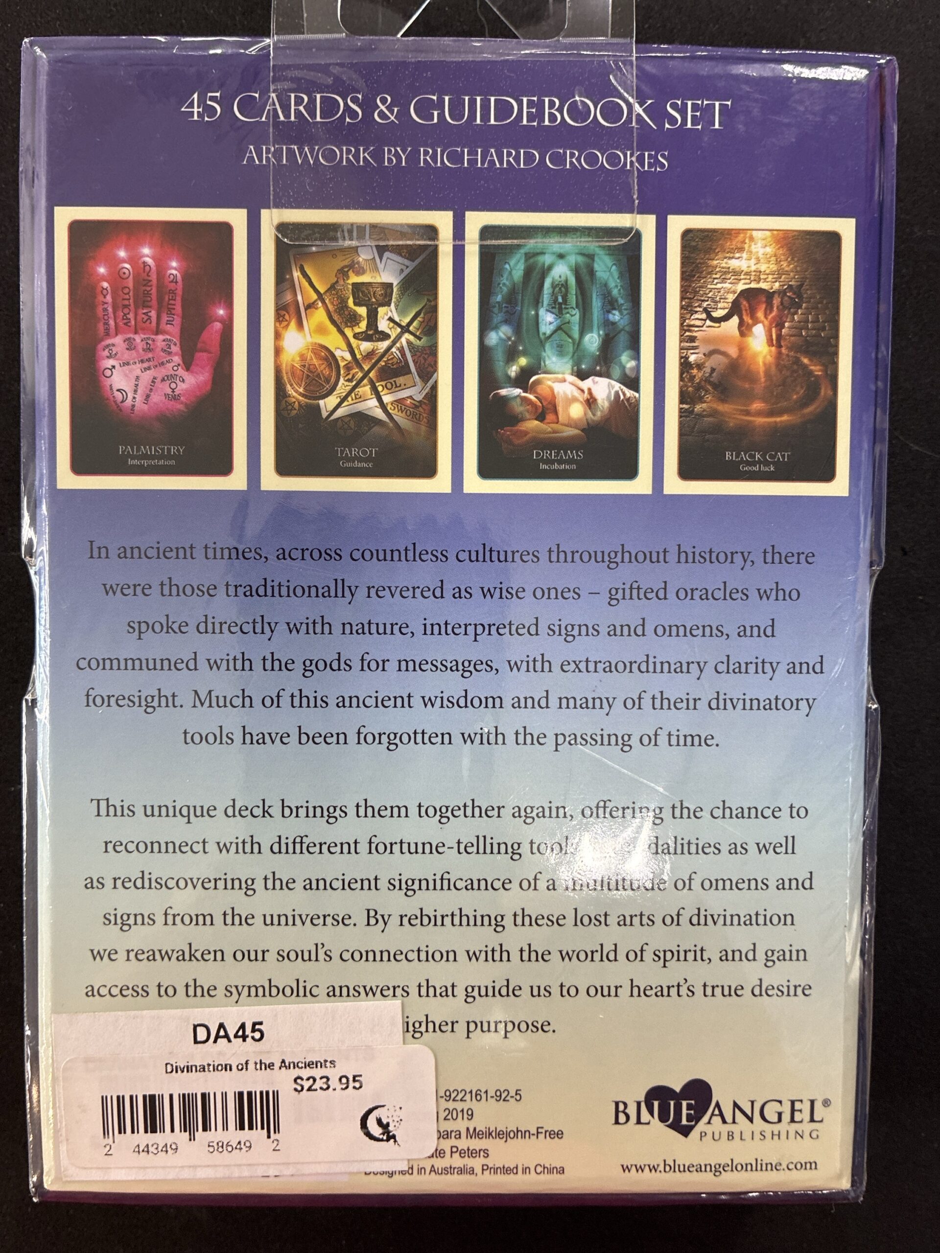 Step into the mystical world of ancient wisdom with the Divination of the Ancients Oracle Cards. This powerful 45-card deck and guidebook set by Barbara Meiklejohn-Free and Flavia Kate Peters, with artwork by Richard Crookes, reconnects you with timeless forms of fortune-telling, omens, and sacred symbols. Each card offers guidance, clarity, and spiritual insight, helping you tap into universal messages and awaken your inner wisdom. Whether you’re a beginner or an experienced reader, this oracle deck provides a profound tool for divination, self-discovery, and connecting to higher purpose.