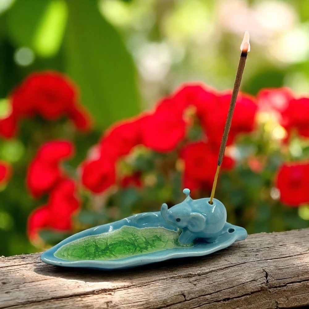 Summon wisdom and good fortune with the Elephant Long Leaf Ceramic Incense Holder – Assorted, handcrafted ceramic designs featuring graceful elephants perched on elongated leaf bases symbolizing strength, memory, and nature’s abundance. Available in assorted earthy glazes like sage green, terracotta, or ocean blue, these holders cradle incense sticks elegantly while the leaf catches ash, channeling Ganesha energy for obstacle removal and prosperity rituals. Perfect for meditation altars, yoga spaces, or eclectic decor.
