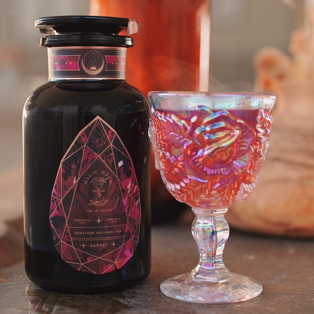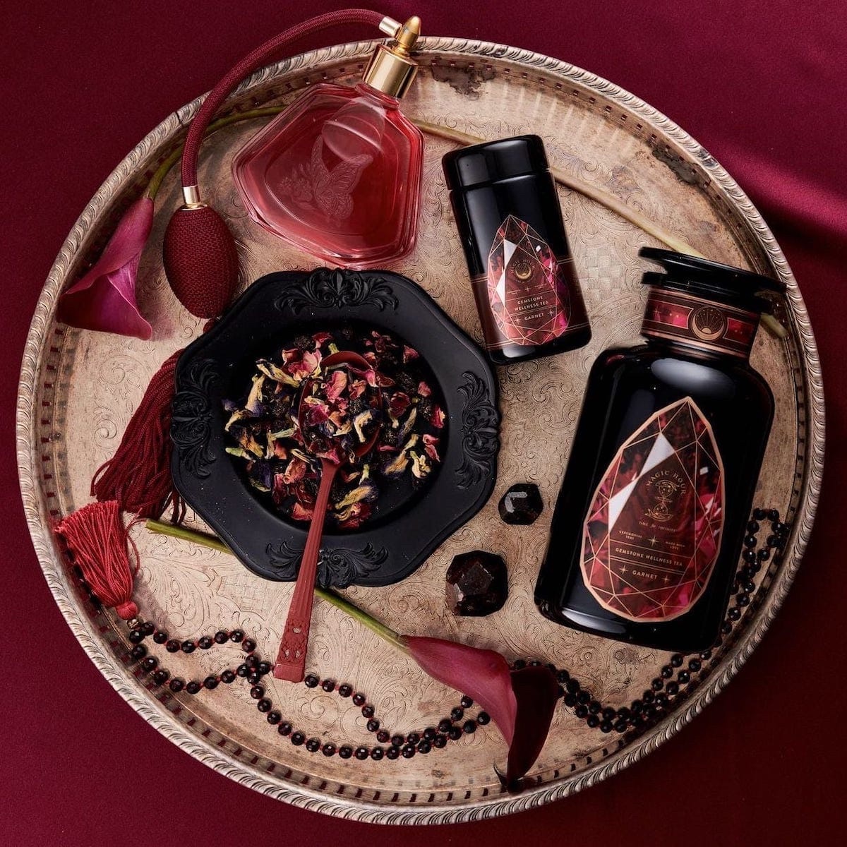 Garnet is a stone which has been known to promote vitality, memory and positive energy. Sip the garnet-hued all-sensory herbal potion as you would a fine wine—with reverence. Each herb, flower and berry has been chosen to emulate the energy of Garnet and may it help evoke and enhance the qualities of confidence, sensuality and self-love within you with every cup.