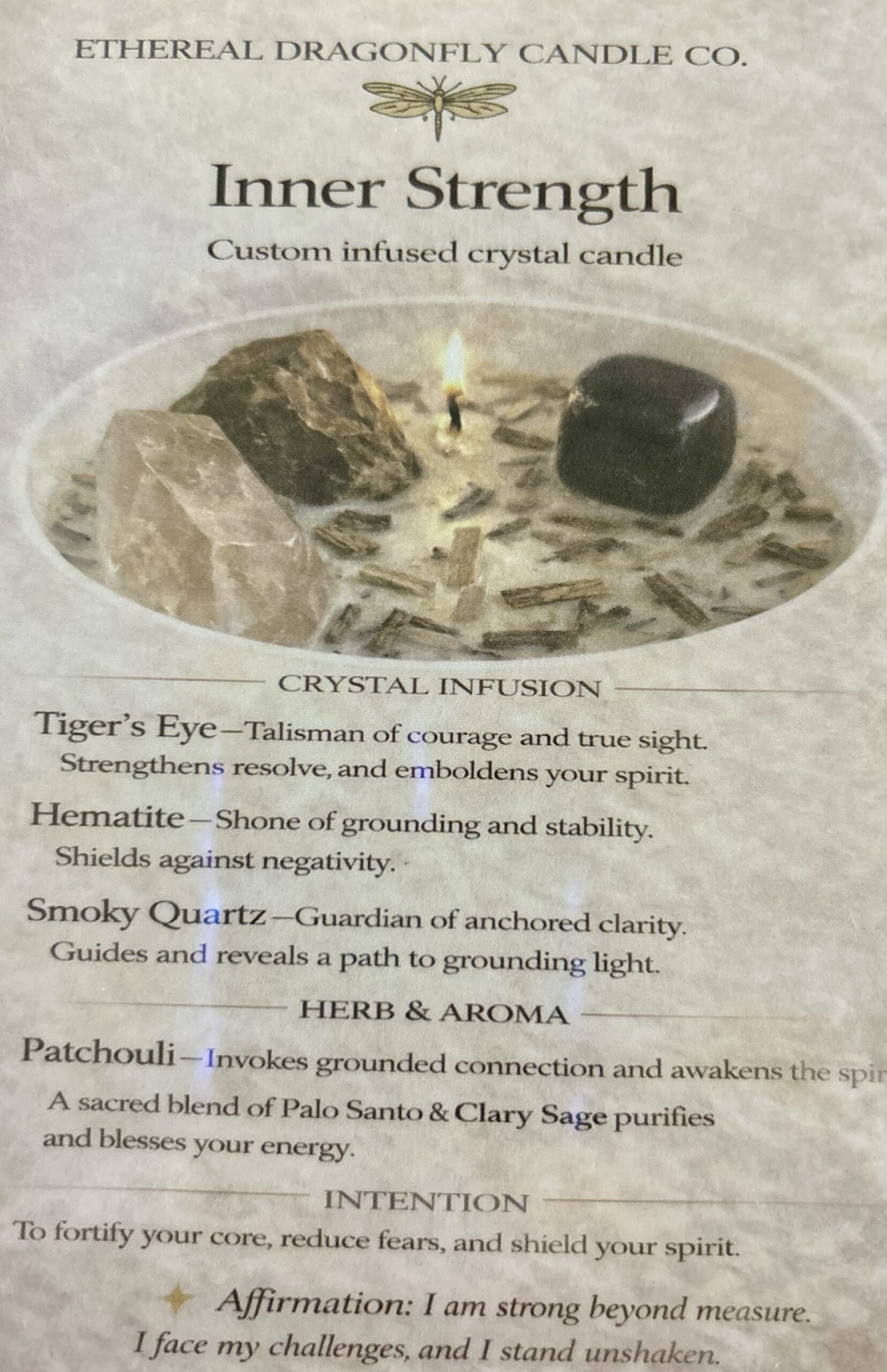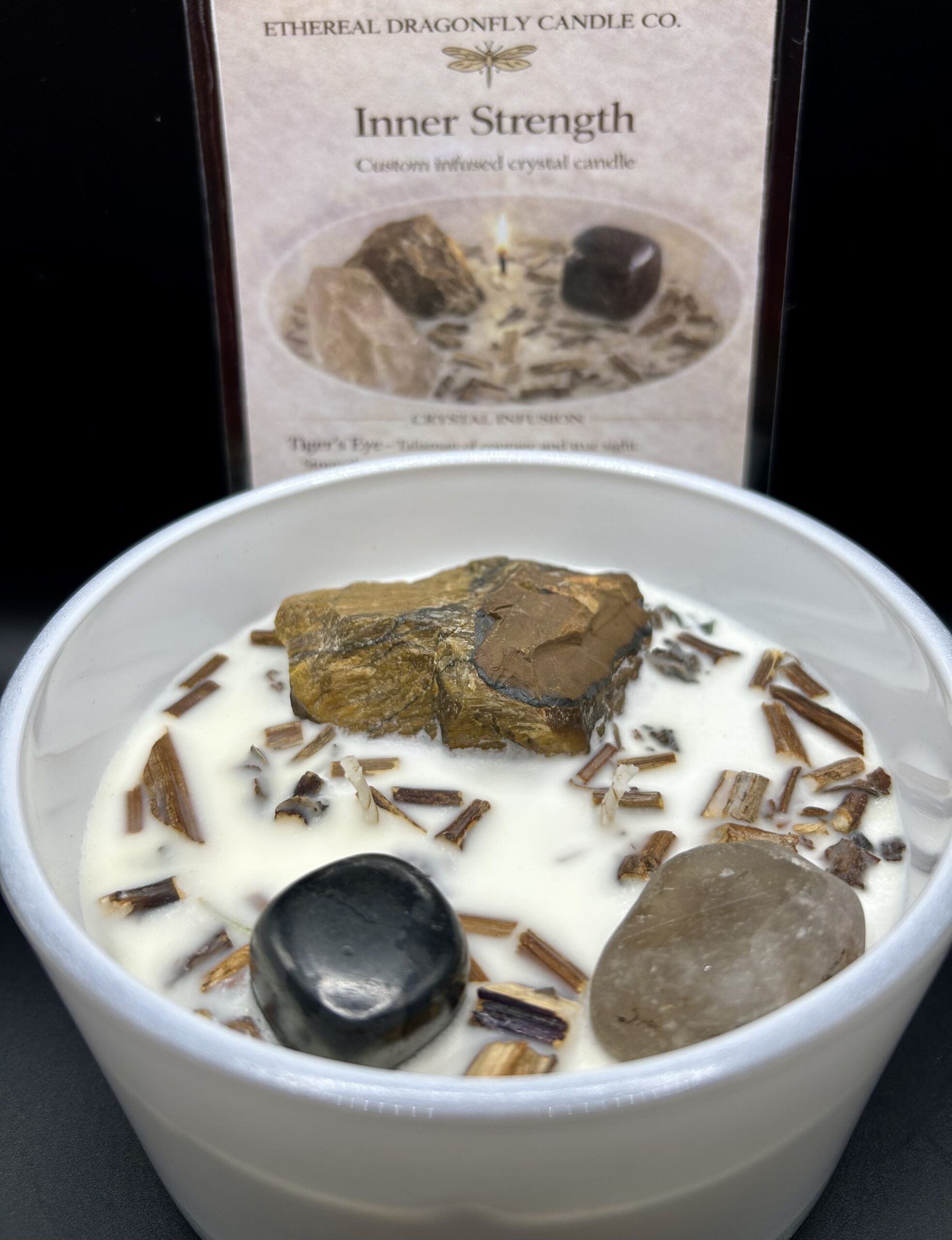 Inner Strength is a custom infused crystal candle designed to fortify your core, reduce fears, and shield your spirit with unwavering resolve. This powerful blend awakens courage, anchors stability, and purifies your energy for a grounded, empowered presence.