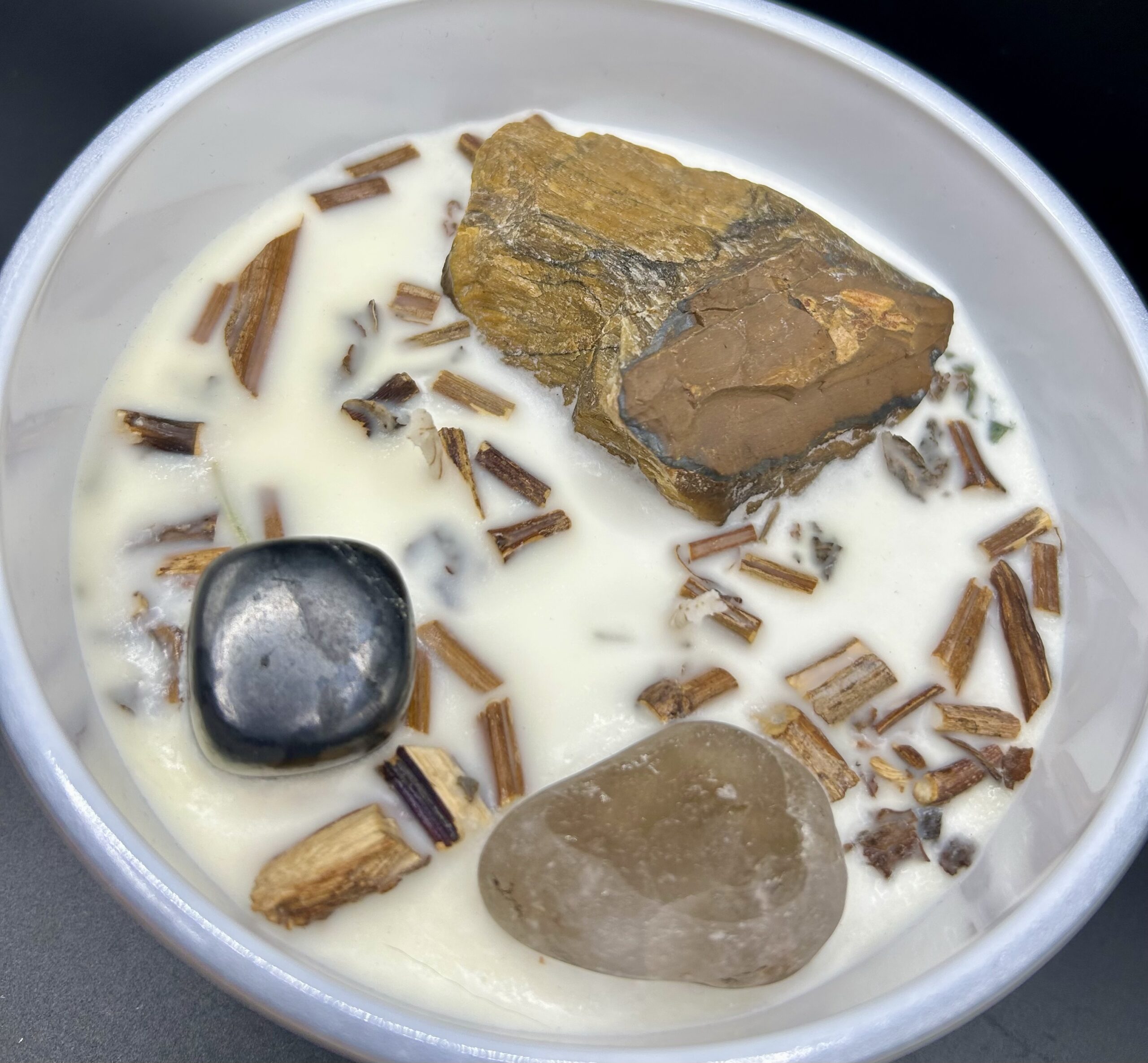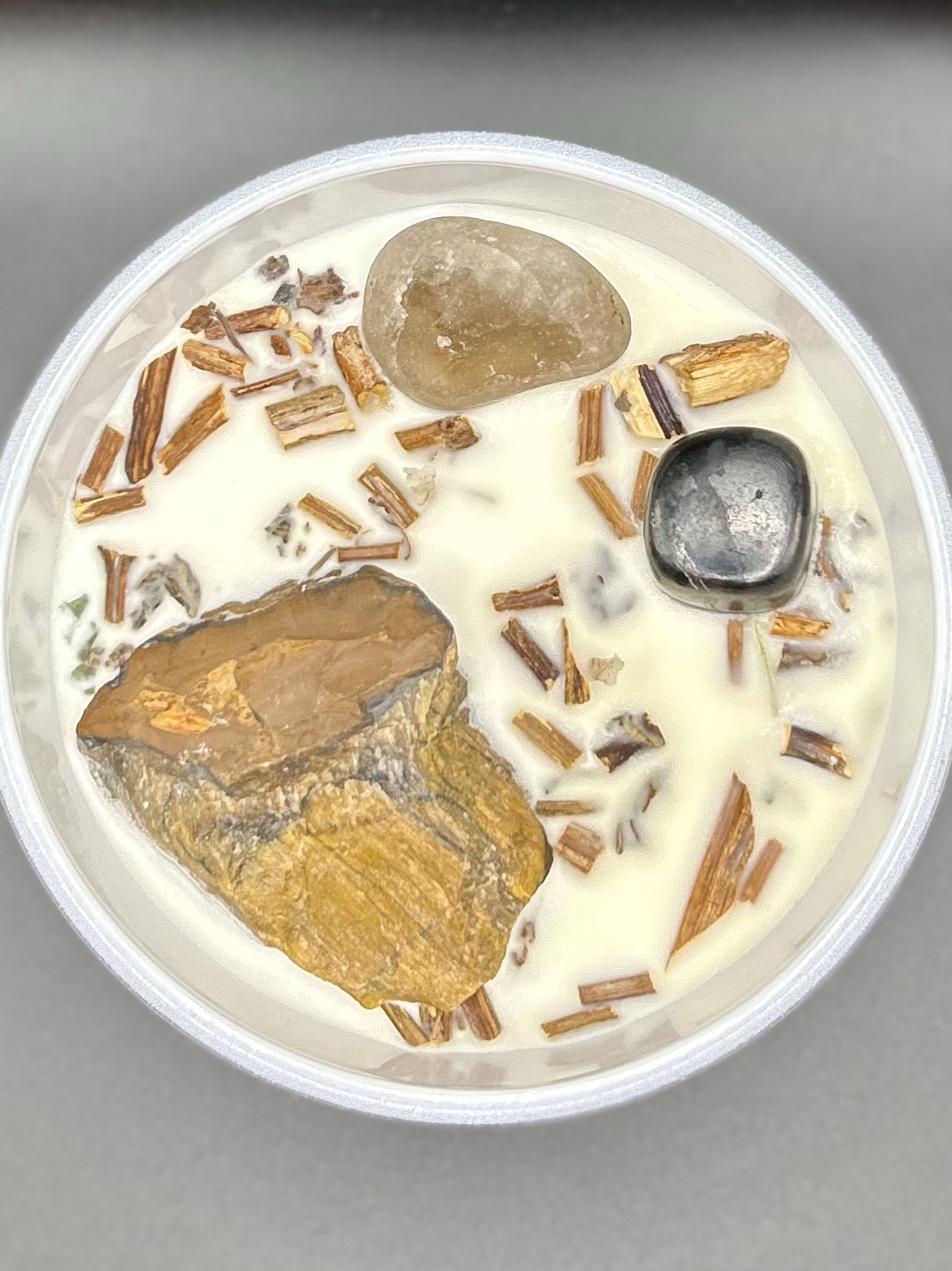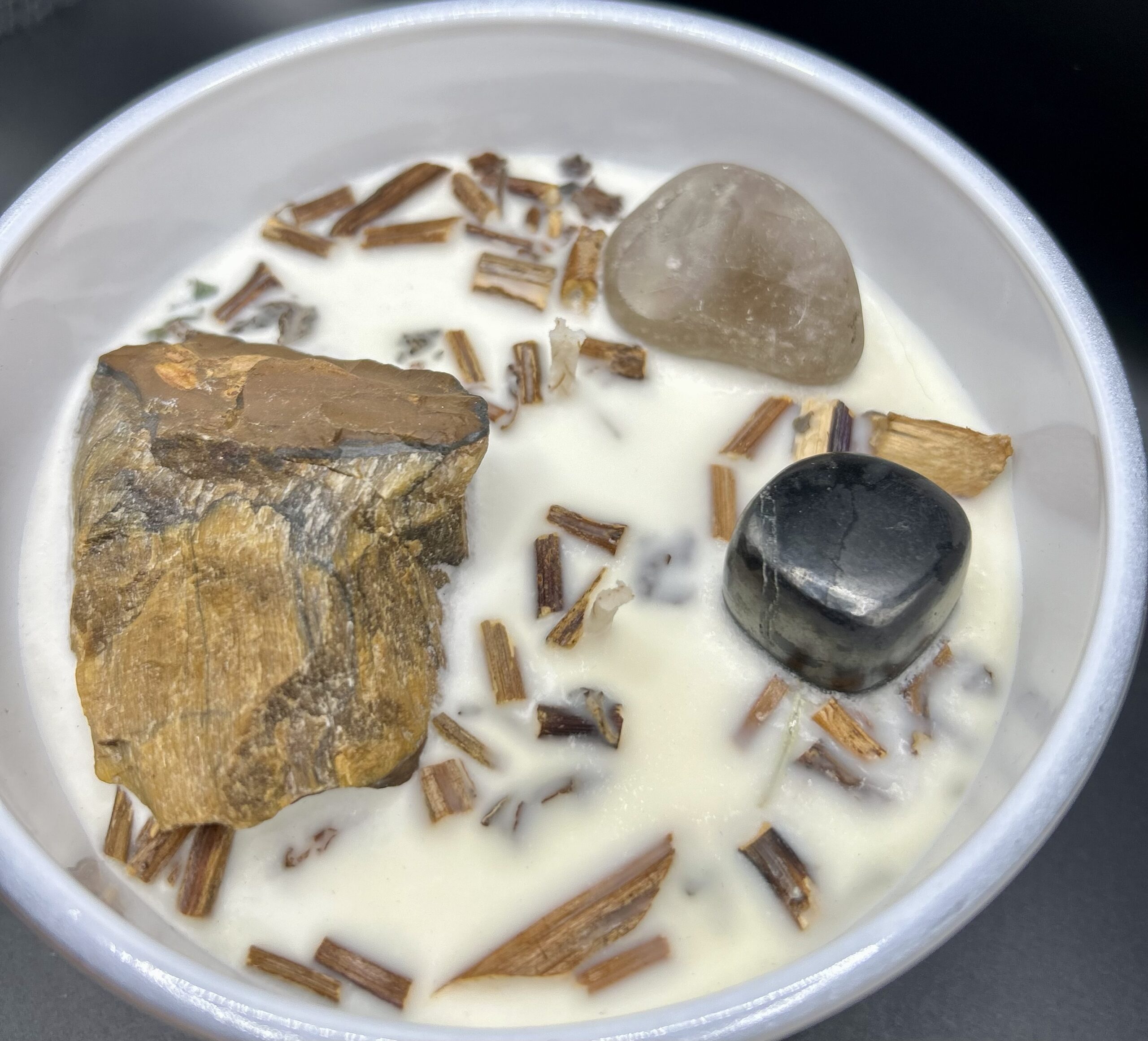 A custom infused crystal candle to fortify your core, reduce fears, and shield your spirit. Tiger’s Eye, Hematite, and Smoky Quartz blend with Patchouli, Palo Santo, and Clary Sage for courage, grounding, and unshakable clarity.