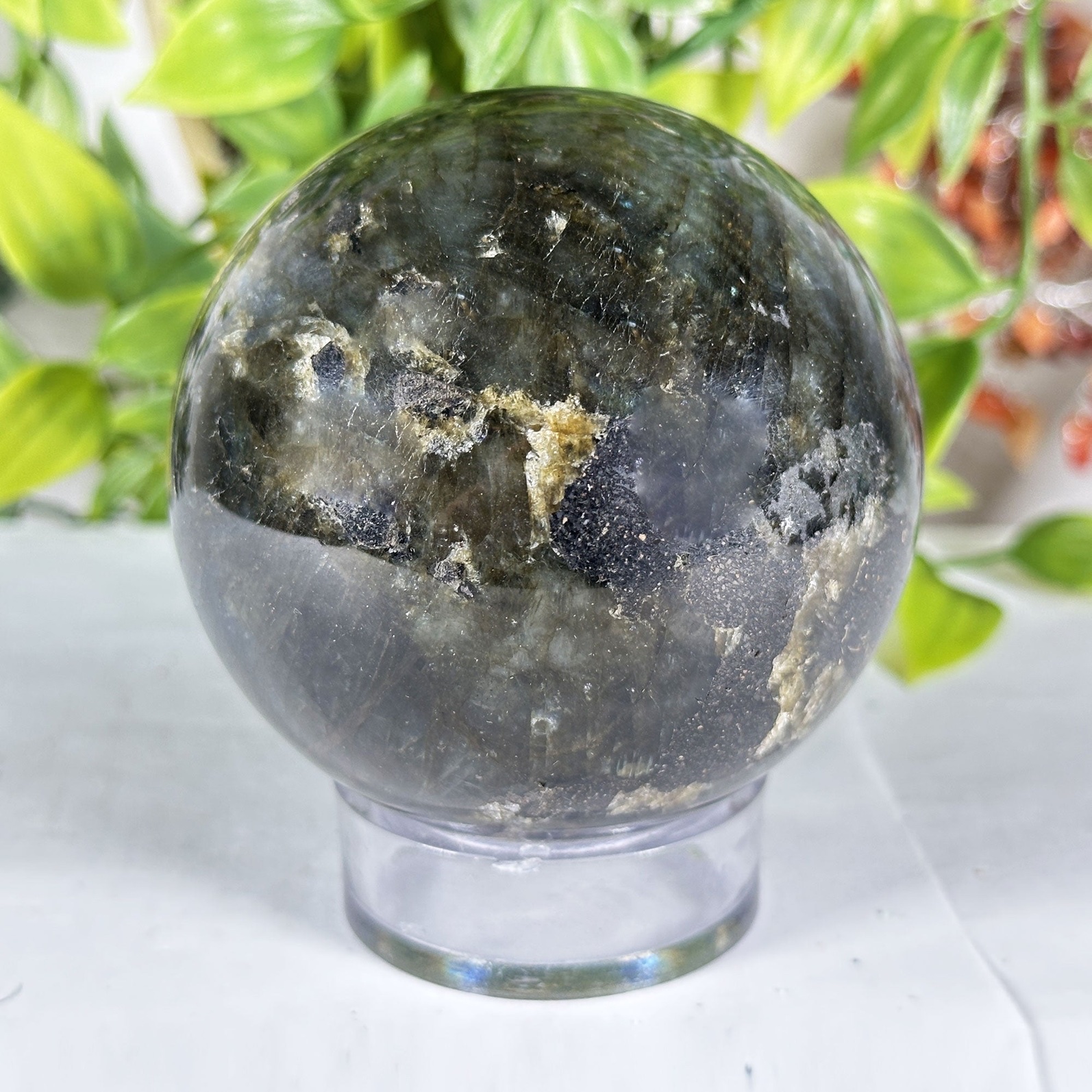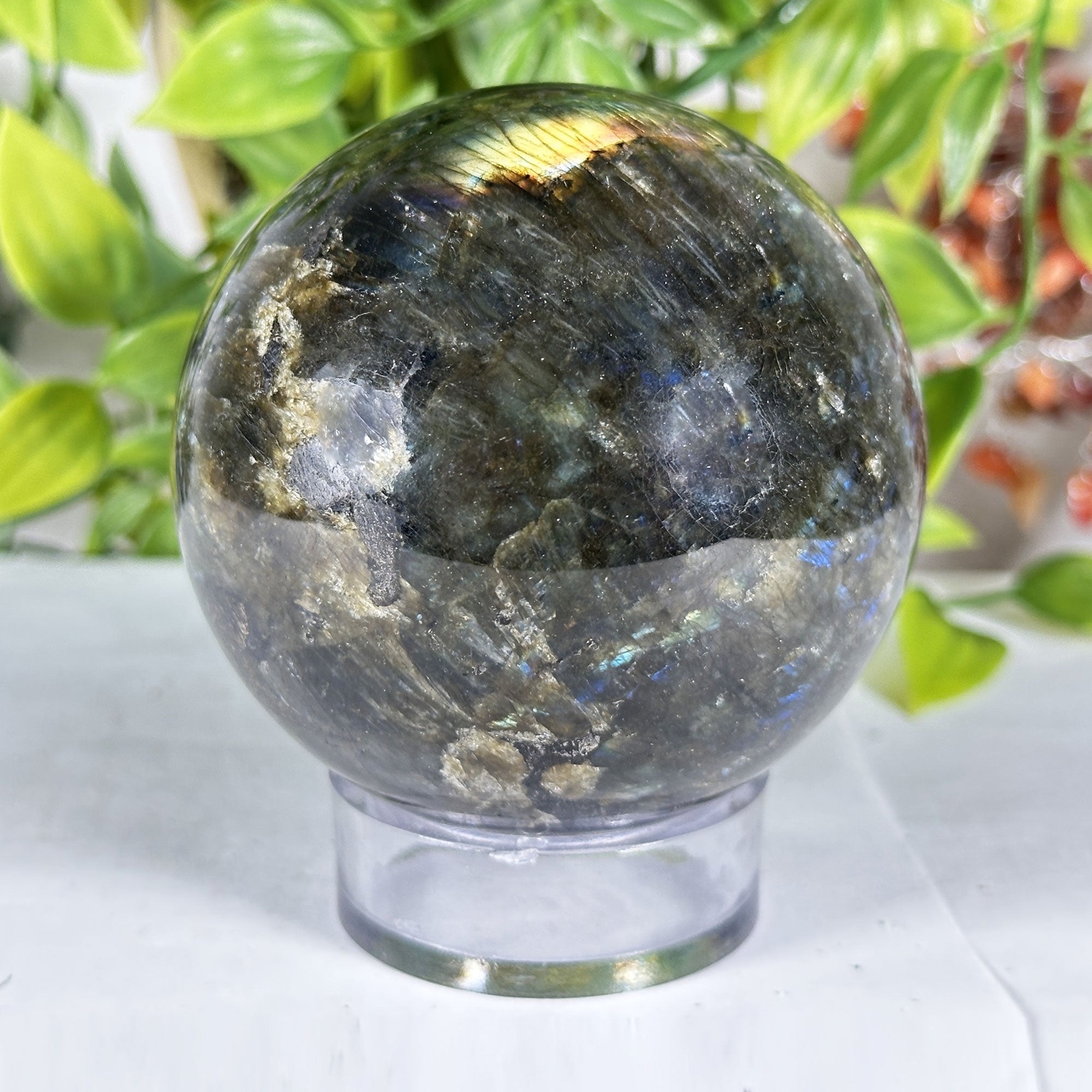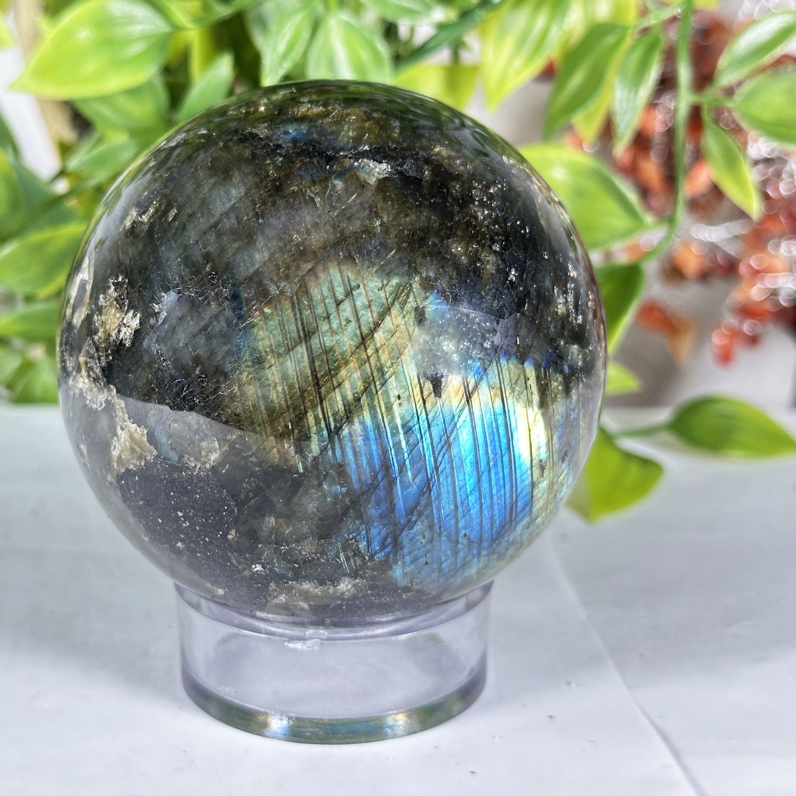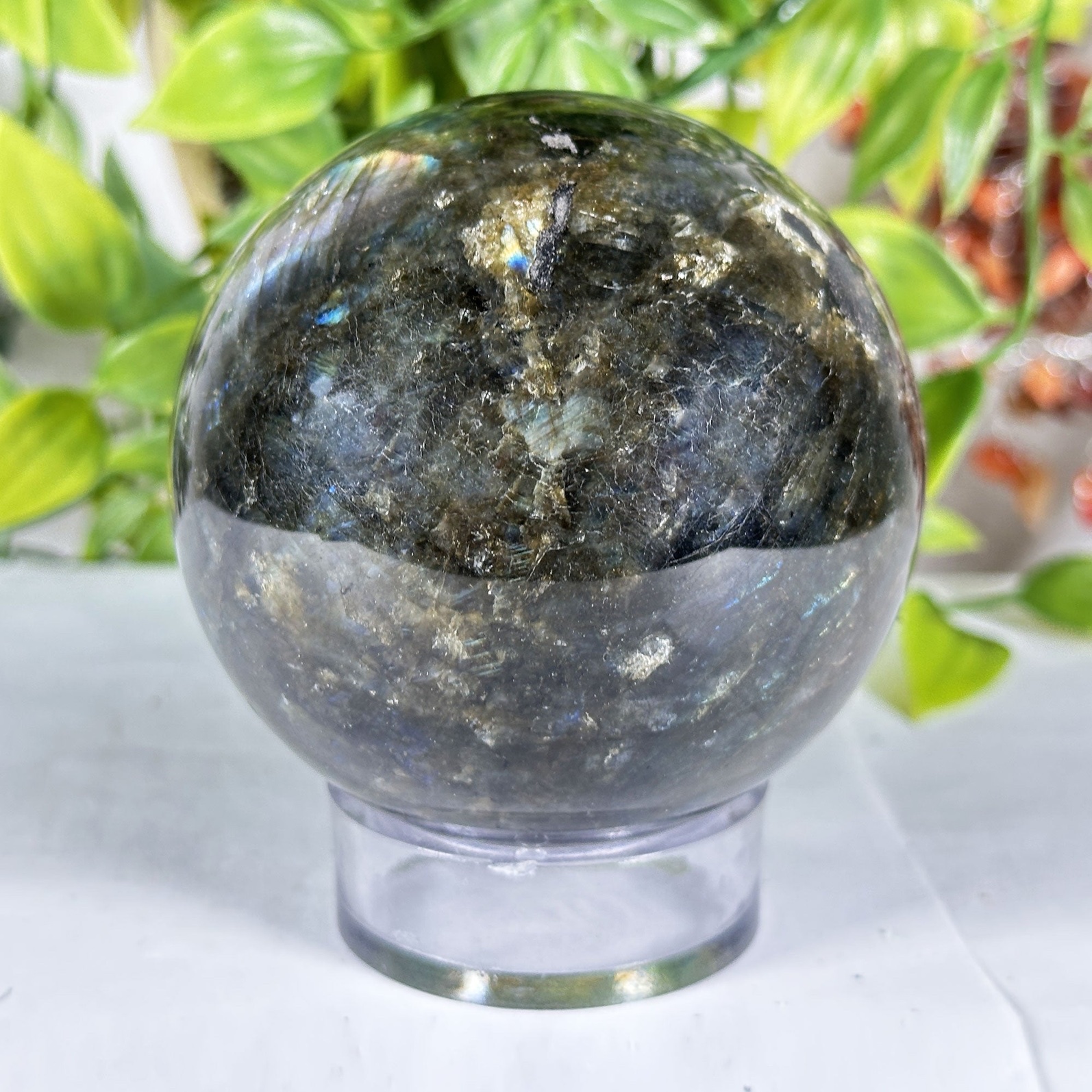 This crystal sphere is ideal for meditation and energy work. It can be placed on a desk or altar to promote calmness and mental clarity. Collectors and healers appreciate its unique flash and natural beauty.
