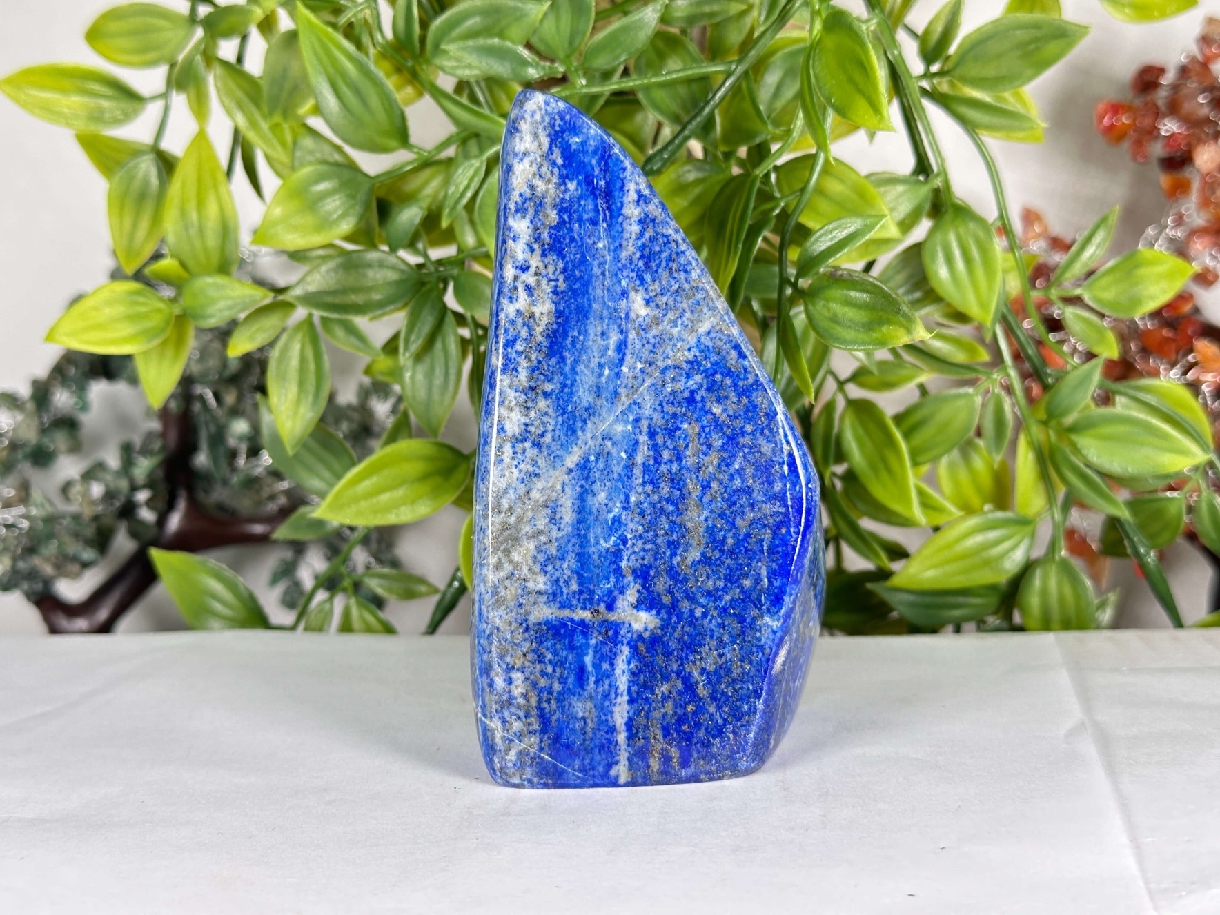 Ideal for decorative displays or crystal collections, this freeform stone brings natural elegance to shelves, desks, or meditation spaces. Its vibrant blue coloration serves as an eye-catching accent piece while the polished finish allows tactile appreciation. Valued by crystal enthusiasts and interior decorators alike, this specimen combines natural beauty with artisan craftsmanship for lasting appeal.