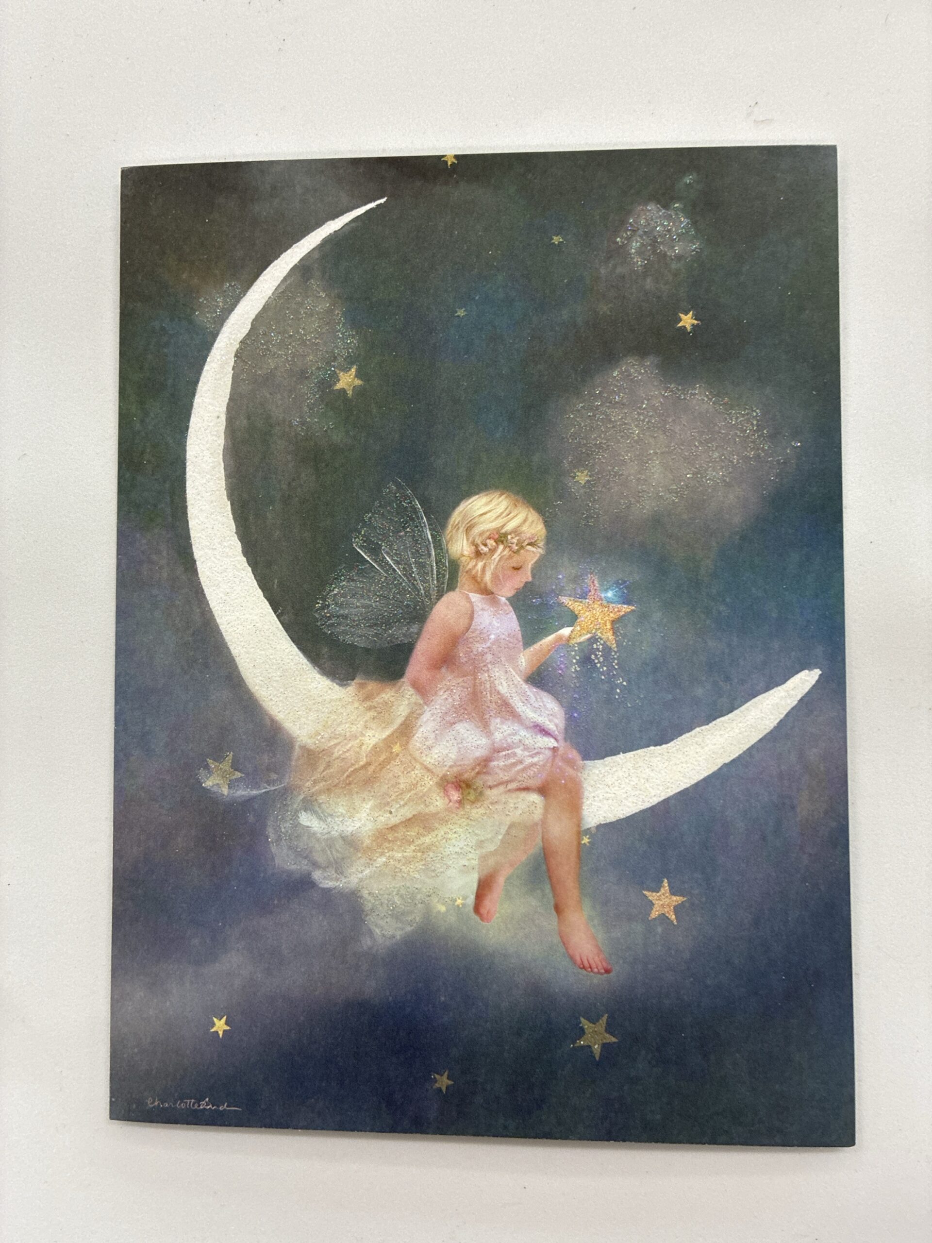 The Crescent Moon with Girl Birthday Card brings lunar magic to life. A young girl sits gracefully with the crescent moon, symbolizing dreams, wonder, and new beginnings. Ideal for stargazers, moon lovers, and anyone who appreciates celestial beauty. Blank inside for your personal birthday wishes.