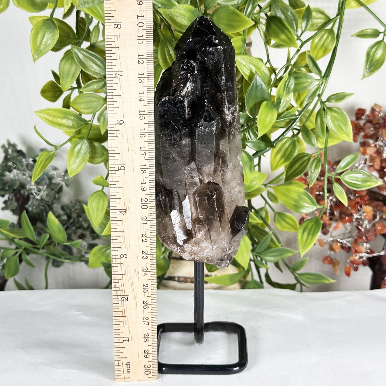 Use this polished smoky quartz tower on an altar for daily intention work, as a focal point during Reiki or chakra sessions, or simply as a centering stone at your desk or bedside. The stand ensures stability and allows the crystal to shine as a conversation piece while quietly supporting protection, clarity, and emotional balance. Natural Smoky Quartz Crystal Tower on Stand is a beautiful, grounding gift for energy workers, collectors, or anyone seeking a calm, centered space.