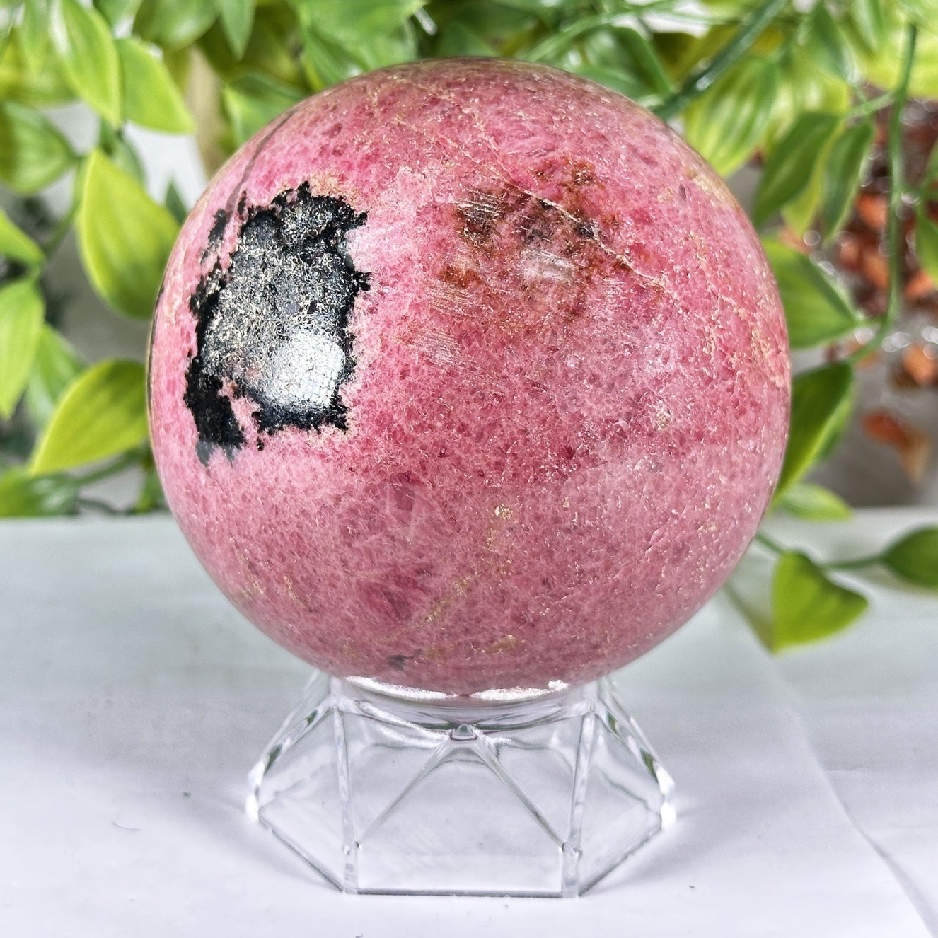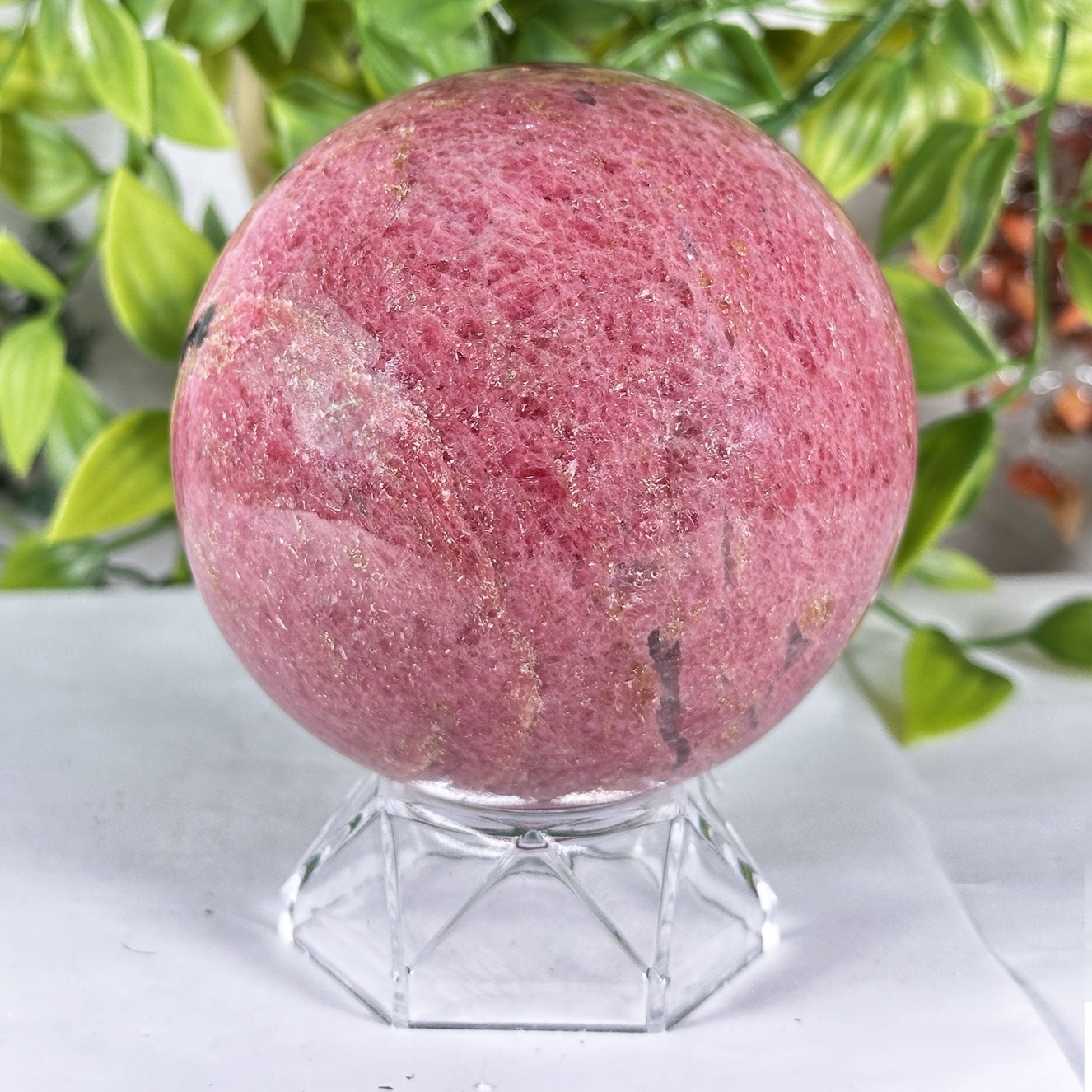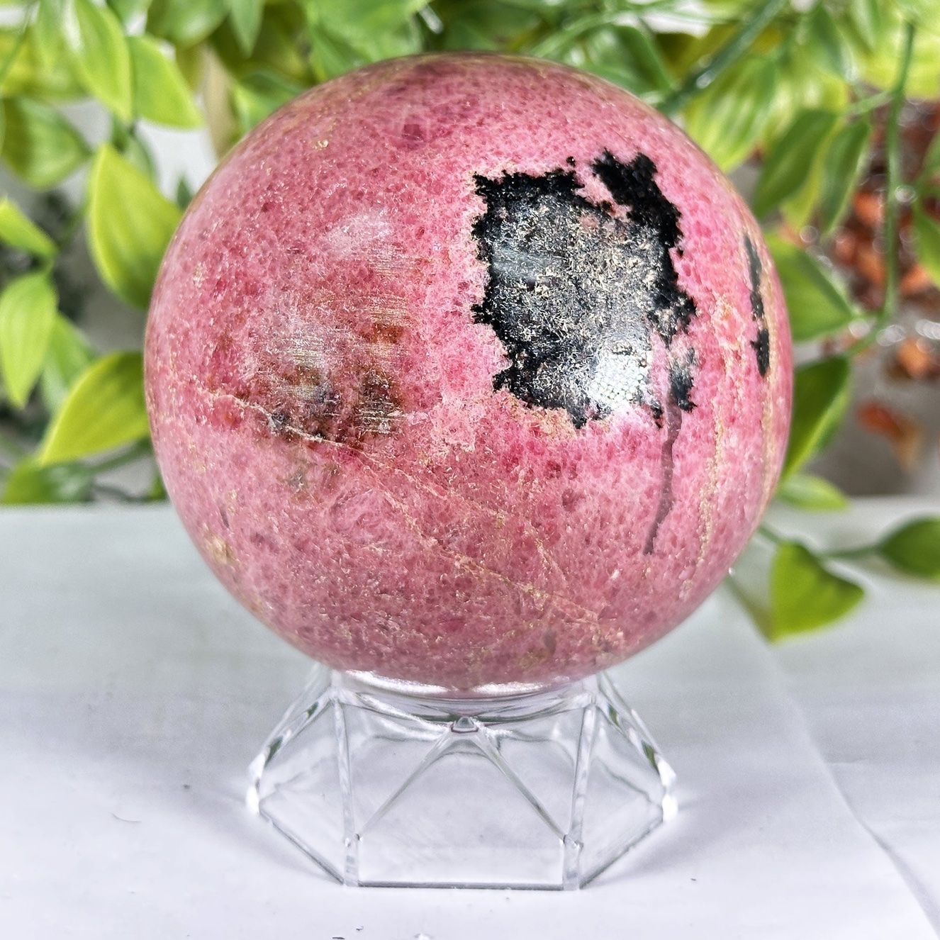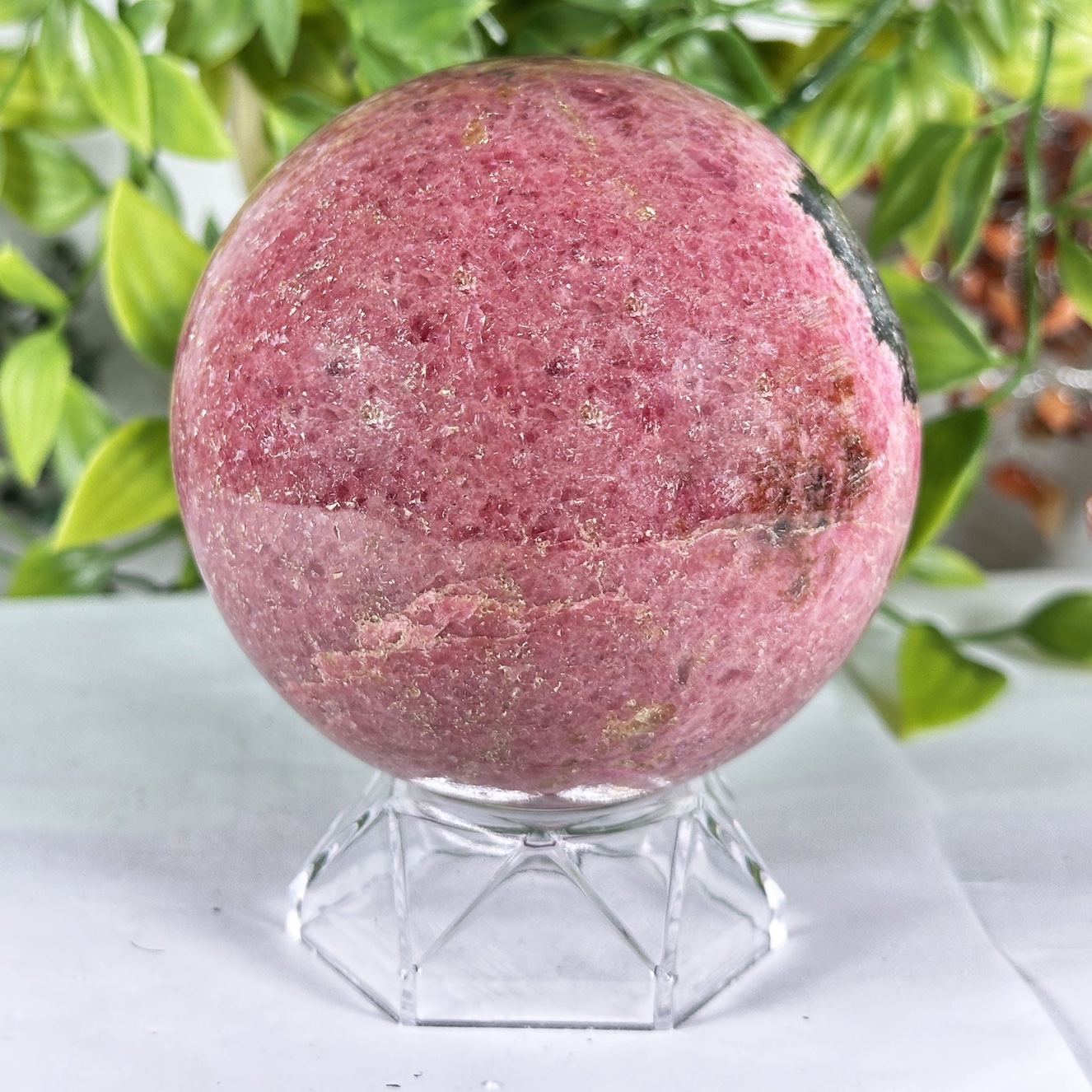 This sphere shape amplifies and radiates rhodonite’s healing frequencies in all directions, making it ideal for meditation, crystal grids, or as a centerpiece on an altar, windowsill, or bedside table. Many practitioners use it to support relationships, healing heartbreak, and releasing anger or guilt after a conflict. Rhodonite is also associated with emotional balance, courage, and resilience, helping you face difficult feelings with gentleness instead of shutdown or avoidance.